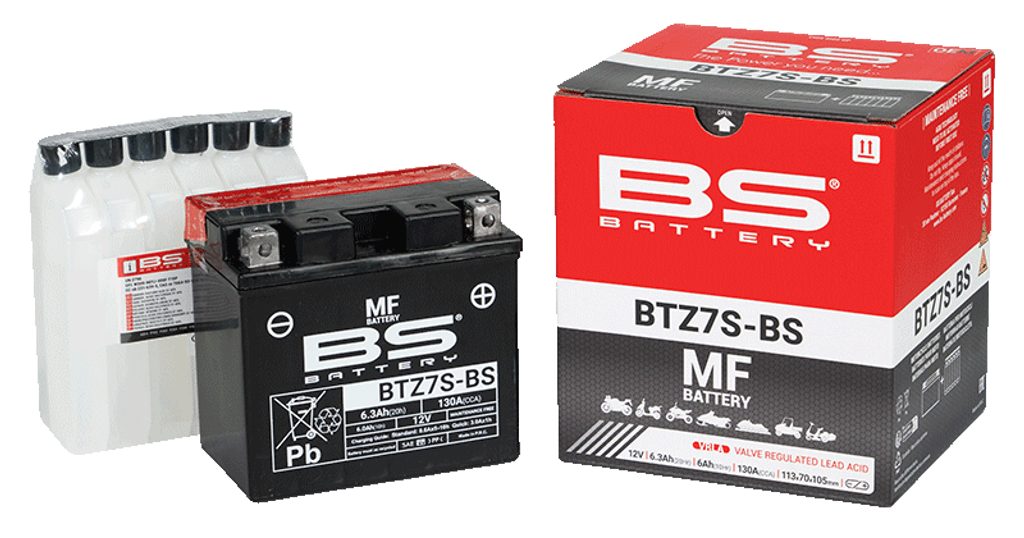 Baterie BTZ7S-BS je součástí naší bezúdržbové MF řady. Tato 12V 6.3Ah baterie se dodává s balením elektrolytu (kyseliny) a před prvním použitím je nutné ji aktivovat nalitím kyseliny.