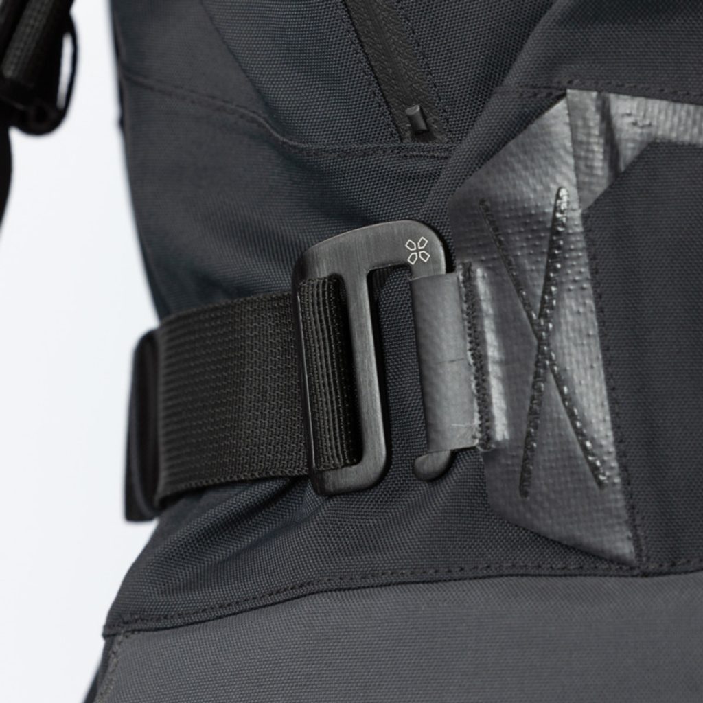 Bezpečnost zajišťují certifikované chrániče ramen, loktů a zad (a volitelné chrániče hrudníku), jakož i konstrukce Airbag Ready - kterou umožńuje použití našich rovnoměrně pevných a pružných panelů z látky X-Stretch, která poskytuje vyšší bezpečnost, lepší pohodlí a volnost pohybu.