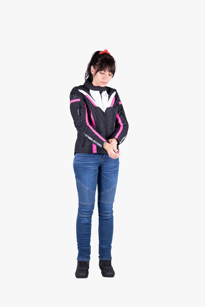 Džíny jsou díky přidanému elastanu a strečovým panelům nad koleny velmi pohodlné, dobře se přizpůsobí jízdní pozici na motocyklu a neomezují v pohybu při jízdě. Díky certifikovaným chráničům a panelům z originálního Du Pont Kevlaru na impaktních místech poskytují vysokou míru bezpečí.