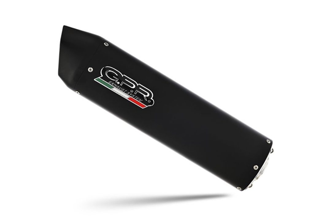 Dvojitá koncovka výfuku Slip-on GPR FURORE NERO K.121.CAT.FUNE Matná černá zahrnuje odnímatelné db killery, spojovací svody a katalyzátory