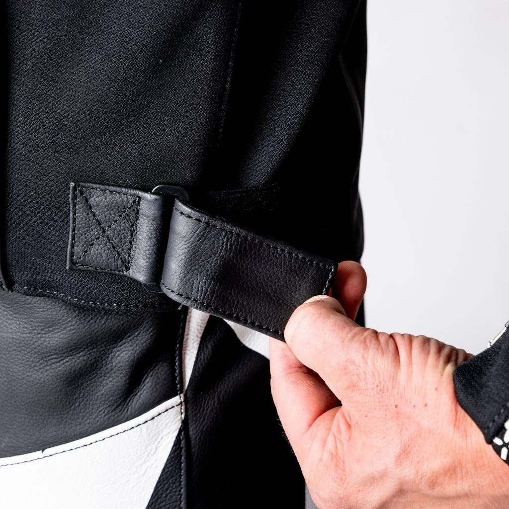 ACE 1.0 KOŽENÁ DVOUDÍLNÁ KOMBINÉZA ČERNO-BÍLO-ČERVENÁ