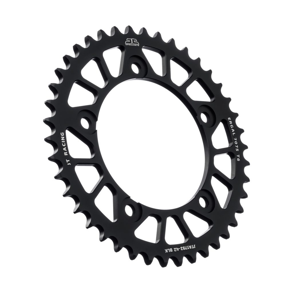 JT používá výhradně ty nejkvalitnější materiály. Pro závodní lehké rozety je to hliníková slitina letecké kvality 7075-T6, pro přední pastorky extrémně pevná slitina SCM420 (chrom-molybdenová ocel) a pro zadní ocelové rozety jako jediný výrobce používá ultra odolnou uhlíkovou ocel C49.