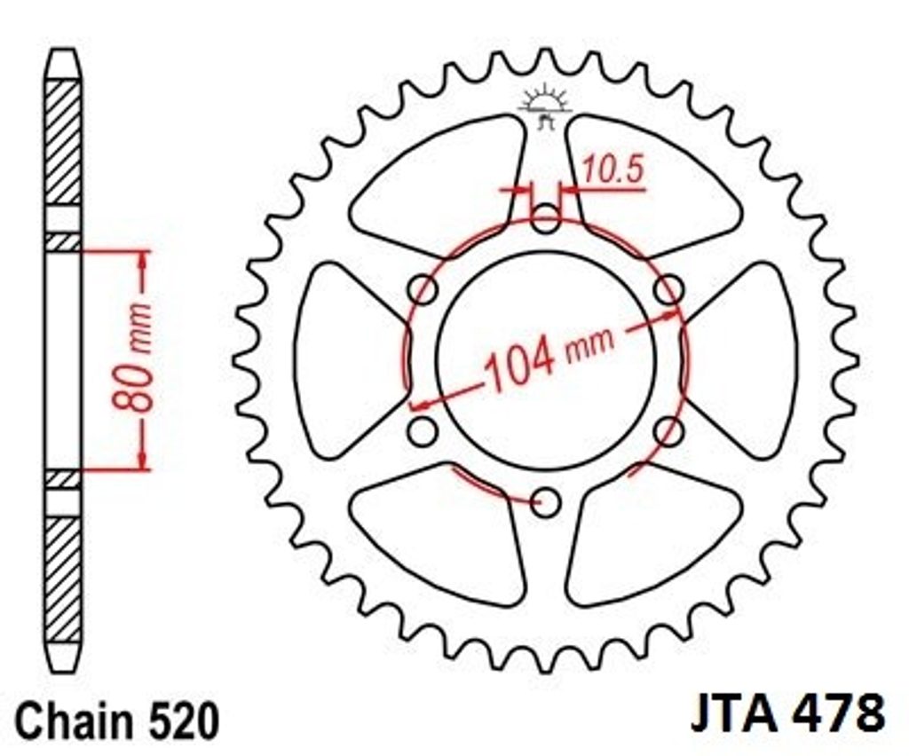 Hliníková řetězová rozeta JT JTA 478-46 46 zubů, 520