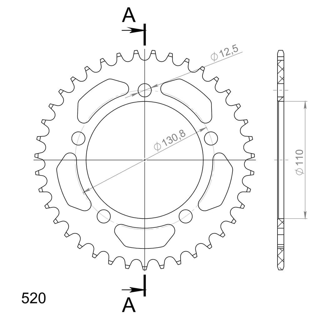Hliníková řetězová rozeta SUPERSPROX RAL-7_520:39-BLK černý 39 zubů, 520