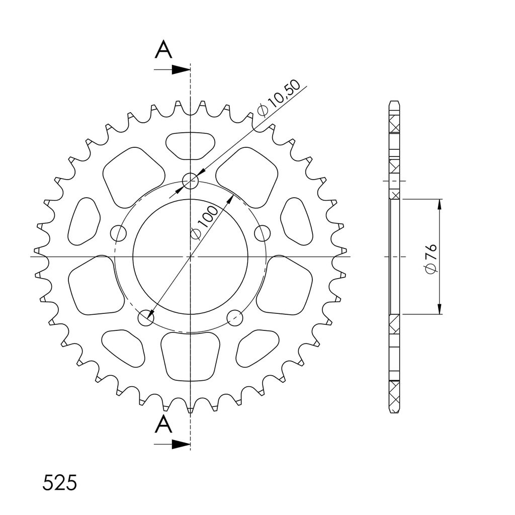 Hliníková řetězová rozeta SUPERSPROX RAL-7092:38-BLK černý 38 zubů, 525