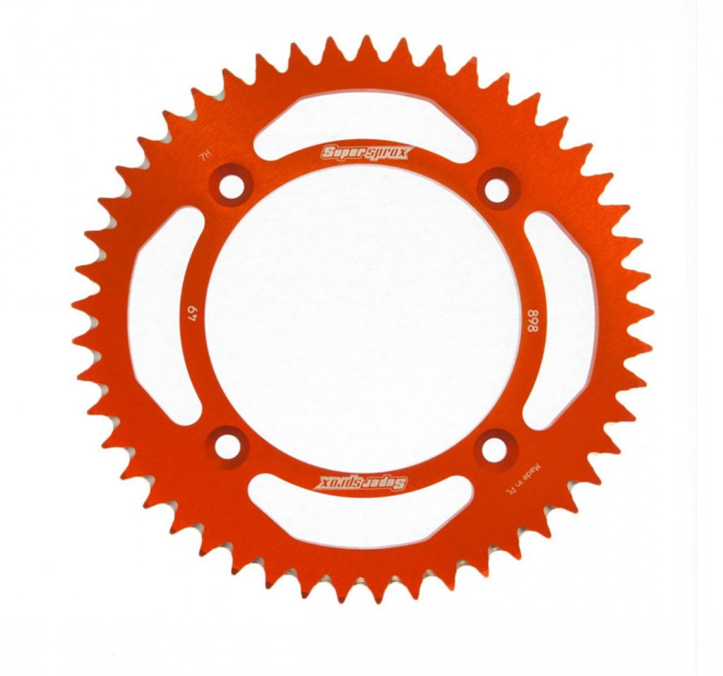 Hliníková řetězová rozeta SUPERSPROX RAL-898:49-ORG oranžová 49 zubů, 428