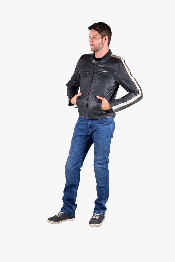 Klasická motocyklová bunda vyrobená z měkké full-grain hovězí usně (nejkvalitnější vrchní část kůže).  Tato klasická motorkářská bunda se hodí praktický na jakýkoliv styl jízdy. Díky špičkovým materiálům, ze kterých je vyrobena přináší vysokou úroveň bezpečí a zároveň pohodlí a skvělou ergonomii. Bundu si rádi obléknete na choppera, retro naháče, veterána ale i jakoukoli jinou motorku a po vyndání chráničů i na procházku do města. Bunda se skvěle nosí a přitom nedělá kompromisy v bezpečnosti - je certifikovaná v té nejvyšší úrovni bezpečnosti AAA.