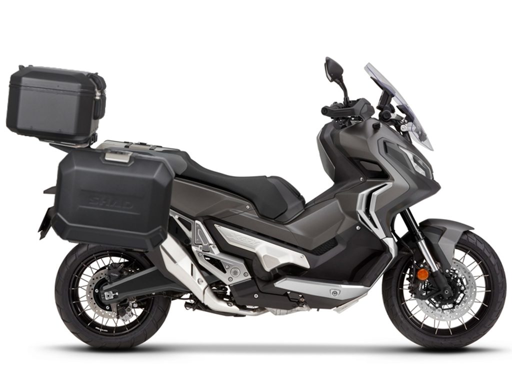 Kompletní sada černých hliníkových kufrů SHAD TERRA BLACK, 48L topcase 36L/36L boční kufry, včetně montážní sady a plotny SHAD HONDA X-ADV 750
