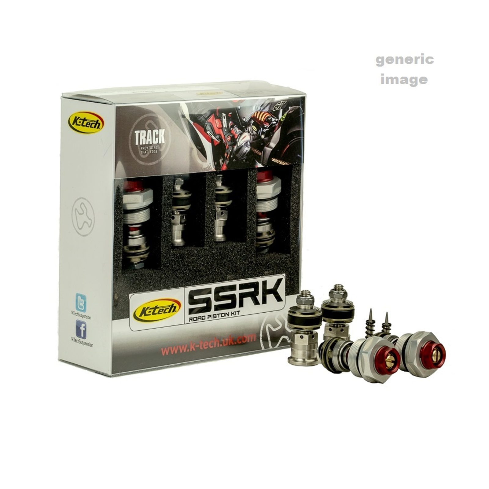 Sady pístů K-Tech SSK jsou určeny pro většinu cartridgových tlumicích systémů předních vidlic a byly navrženy pro silniční i závodní použití. Poskytují lepší kontrolu tlumení než originální díly, čímž zvyšují komfort a jistotu jezdce. Všechny sady pístů jsou dodávány jako kompletní sestava pro snadnou montáž, včetně nových řídicích ventilů a jehel, což umožňuje přesnější rozsah nastavení.