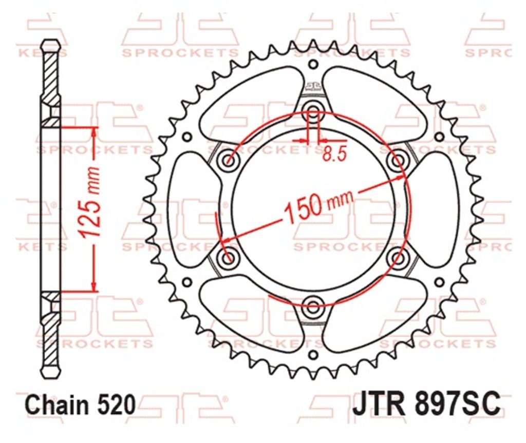 Řetězová rozeta JT JTR 897-49SC 49 zubů, 520 Samočistící, Nízká hmotnost