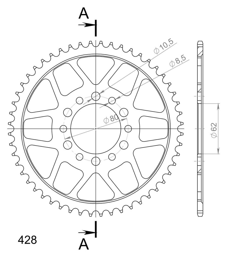 Pevnější zuby = vyšší životnost řetězové sady až o 10%. Rozeta 52z, řetěz 428. Více informací