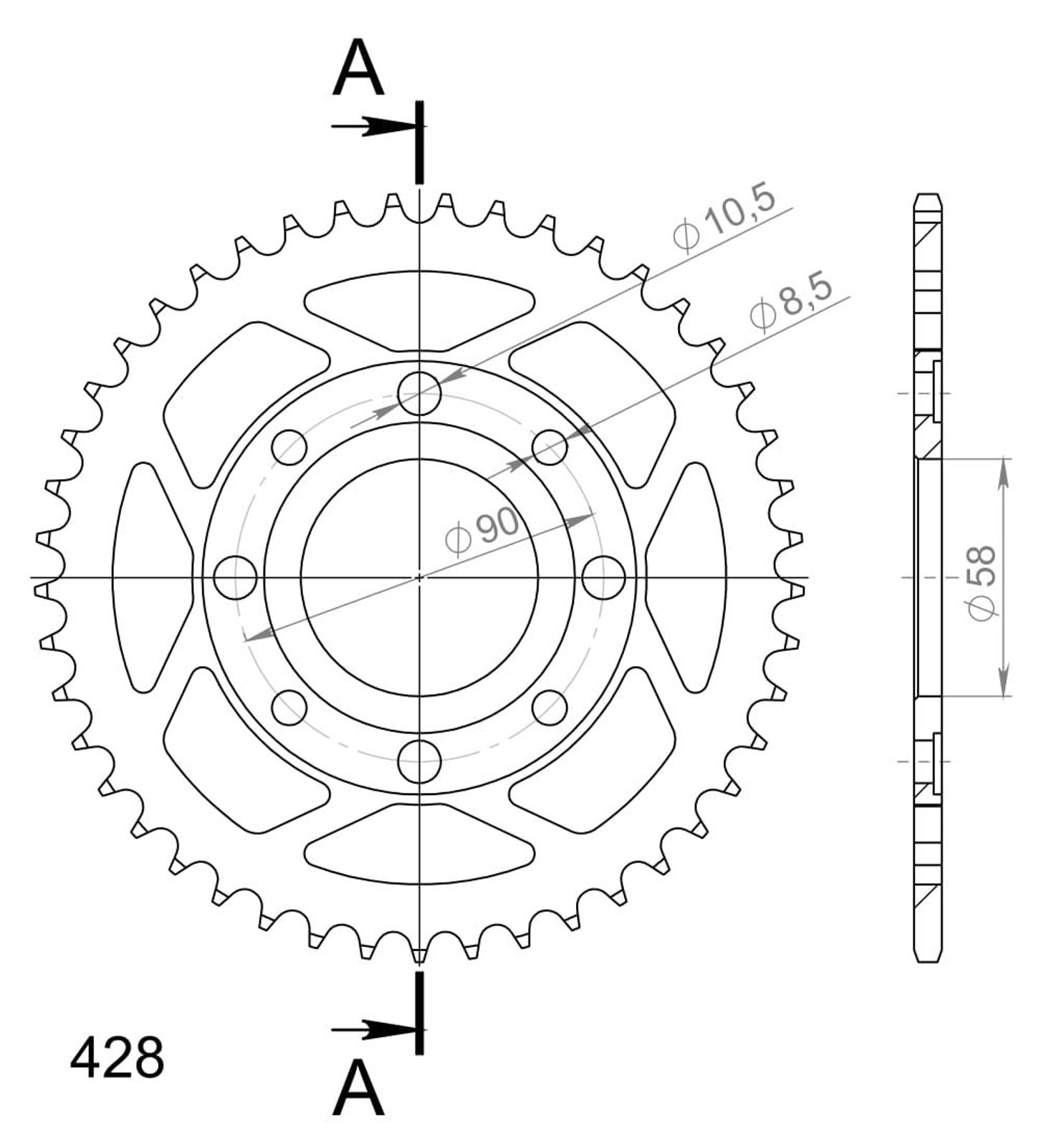 Pevnější zuby = vyšší životnost řetězové sady až o 10%. Rozeta 45z, řetěz 428. Více informací