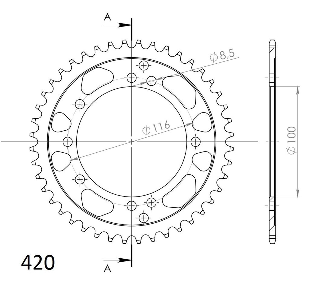 Pevnější zuby = vyšší životnost řetězové sady až o 10%. Rozeta 44z, řetěz 420. Více informací