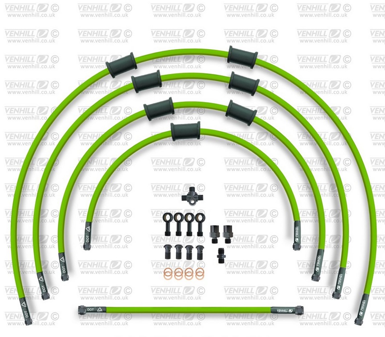 STANDARD Hadice přední brzdy sada Venhill POWERHOSEPLUS SUZ-10002FB-GR (5hadic v sadě) zelené hadice, černé koncovky
